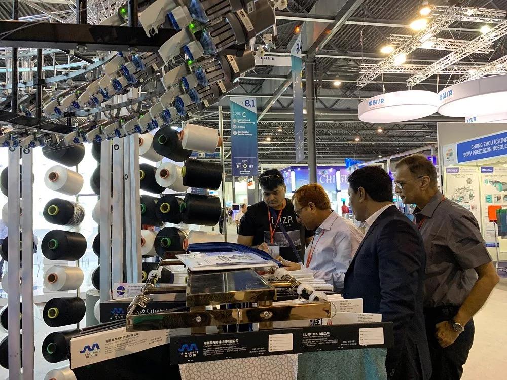 ITMA是引领潮流的纺织和服装技术平台,该行业每四年汇聚一次,旨在探索新思路、寻求解决新方案、创建合作共赢契机。本次展会上,中国参展企业数量位居次席(276家),超越了德国(222家)、印度(169家)与土耳其(164家)。彰显了中国企业更加自信地登上国际舞台,同台展示中国制造与中国创造。哪些中国制造正在改变全球用户的传统看法?哪些企业又推出了让人眼前一亮的新产品技术?本次展会期间,我们将持续推出【直击ITMA·他们正在改变世界】系列报道,带你到现场去看本届展会的新变化。日照品特裕华做高品质关键产品日照品特裕华纺织科技有限公司总经理刘文田介绍,本次展会上,日照品特裕华纺织科技有限公司展出了单锭监测系列、粗纱自停装置、纺纱软件管理系统、包芯纱系列产品。2015年日照裕华机械有限公司同西班牙品特凯普公司合资成立了日照品特裕华纺织科技有限公司,正式进军纺织信息化和特色纺纱领域。之后,在中国市场实现了迅猛发展,每年销售都实现了翻番。本次展会上,公司展出的单锭监测系列,是与自意大利芬妮公司共同研发、生产、销售和服务的,该产品分为棉纺、毛纺、赛络纺三种系列——电磁式 、电光式两大类型。可实时采集数据,降低用工,提高生产效率,企业实现精细化管理的必然选择;支持互联网连接,实现远程实时监测,监测每个锭子的运转状态;EFFISPIN用于棉纺,Blumis用于毛纺,Star-Yarn Siro用于赛络纺。粗纱自停装置可减少粗纱浪费,减少生产用工,杜绝皮辊缠绕,减少风箱花,改善生产环境,提高纱线品质,降低能耗,节省制造成本。纺纱软件管理系统可以监控所有机台当前班次的实时生产信息,进行数据整理和分析,可查看系统记录和统计的各项生产数据,使管理更加有据可依,考核更精准。包芯纱系列产品是与西班牙品特集团共同研发、生产、销售和服务,分为单包芯纱、双包芯纱、3D包芯纱三大系列。可实现精准芯丝张力控制;自动横动,降低皮辊损耗;芯丝在线监测,杜绝空芯纱;高效管理,完美控制。花式纺纱系列产品(来自西班牙品特公司)包括竹节纱、段彩纱、马赛克纱、彩色并条机;竹节纱测试仪、美林打样机等。彩色并条机设备可最多同时输入6中不同颜色棉条;专业软件系统精确控制和模拟各色棉纱的喂入。此外,日照裕华还展出了裕华牌系列摇架、紧密纺、钢领等产品品。裕华牌系列摇架有V型牵伸、平面牵伸及紧密纺专用摇架、弹簧加压摇架。特点是精准调压,无弹簧疲劳现象,锭间差异小,平行度高,纺纱指标优异;调压范围大,产品适纺范围广;放假停车时可实现半释压,无需抬高摇架,在开车时无需接头,生产效率高。裕华紧密纺产品采用专用节能风机,能耗低;开放式集聚管部件,维护简单。扭簧式张力架,网格圈拆装方便。耐磨盖板配置,使用寿命长,单纱与赛络纺切换方便;气流逆止装置便于集体排风,防止气流倒灌,避免出现大面积断头现象;移位纺纱技术,皮辊寿命延长一倍。“裕华”牌钢领精度高,寿命长,走熟期短,有PG1、PG1/2两大系列21个品种,年生产能力达到700万件;近几年来,公司致力于高端钢领的研发,目前生产的高精度轴承钢钢领,采用数控机床加工,尺寸精度高,内外组织一致,使用寿命长,是普通钢领的3~5倍,尤其适用于紧密纺的生产应用。TPET全球首创智能家纺设备苏州琼派瑞特电子科技有限公司(TPET)董事长刘航东第一次参加ITMA展会,但他在开展第二天就决定在展会结束后,马上预定下届米兰米兰展会的展会,而且他计划将展位面积扩大到今年的5倍。本次展会上,苏州琼派瑞特电子科技有限公司(TPET)重点推介ET-5833全自动全棉毛巾机、TPET家纺智慧工厂、ET-6660全自动床单机、ET-5810全自动超细纤维毛巾机等设备。ET-5833全自动全棉毛巾机实现了裁缝一体化、少人化、无人化的生产工艺。它适用于家用常规尺寸毛巾,浴巾等产品的自动化生产。该机的主要特点包括:自动缕毛,线头超短(2mm内),高端品质;自动四边折边缝,速度更快;自动上商标(可多标);自动裁剪,自动剪线;自动收料;智能触摸操控系统;SPV数据管理,云端管理;一键启动模式,操作方便;自动切边,实现产品尺寸标准化。TPET家纺智慧工厂平台是一套提供生产制造信息化、自动化、智能化的软硬件整体解决方案。通过自动搬运、自动化生产设备、自动化检测设备与信息化软件进行集成,对整个生产过程实现数据采集、过程监控、TPM设备管理、质量管理、生产调度以及数据统计分析,从而实现生产现场的信息化、智能化和柔性化智能制造管理。TPET全球首创家纺智慧工厂,并付诸实施,目前已实现了床单、被套、枕套、被芯、枕芯;毛巾、浴巾、方巾、餐巾、干发巾、洗碗巾;地毯、地垫、毛毯、凉席、浴帘、窗帘等四边缝产品的自动化生产。通过云管理平台,可以帮助客户实时了解家纺智慧工厂的生产效率、成品率、设备的使用效率、故障报修的及时响应等。TPET家纺智慧工厂的主要特点为,采用五大模块帮助工厂实现智能生产制造:智慧云管理运营平台实现接单、排单、派单工作与管理;智慧无人运输车实现送料、收料、入库;全自动四边缝制设备,实现自动化生产;生产管理数据实现自动采集、传输、分析并形成报表;可视化无线监控系统,无论您身在何方,车间一目了然。ET-6660全自动床单机实现了裁缝一体化,它获得国家授权发明、实用新型专利6件;