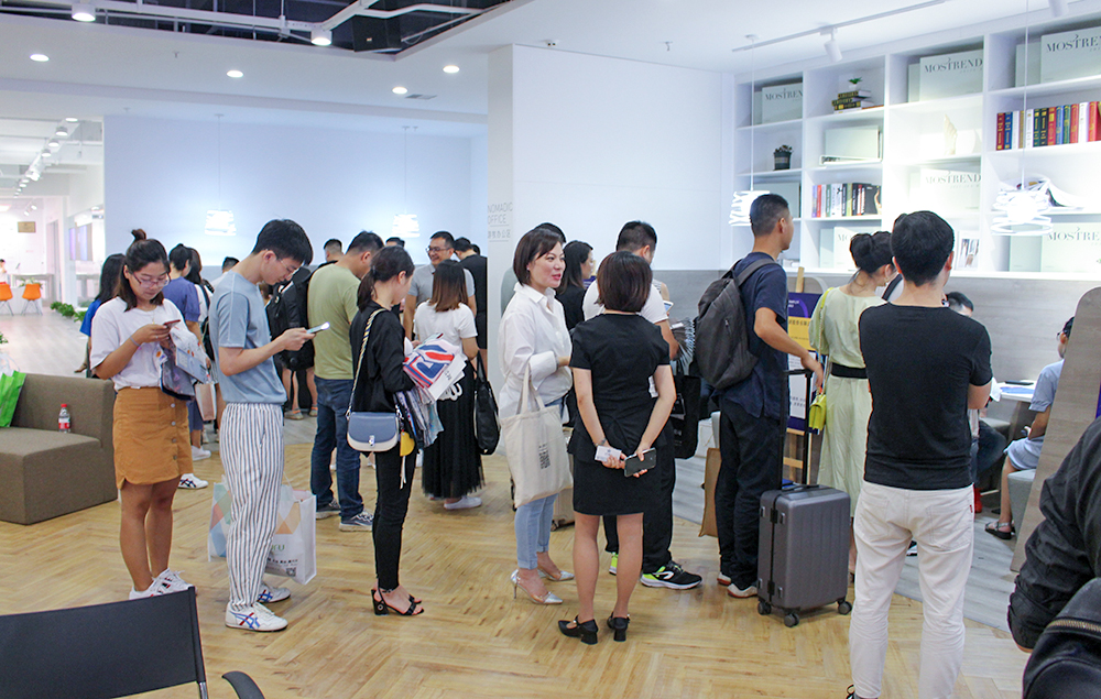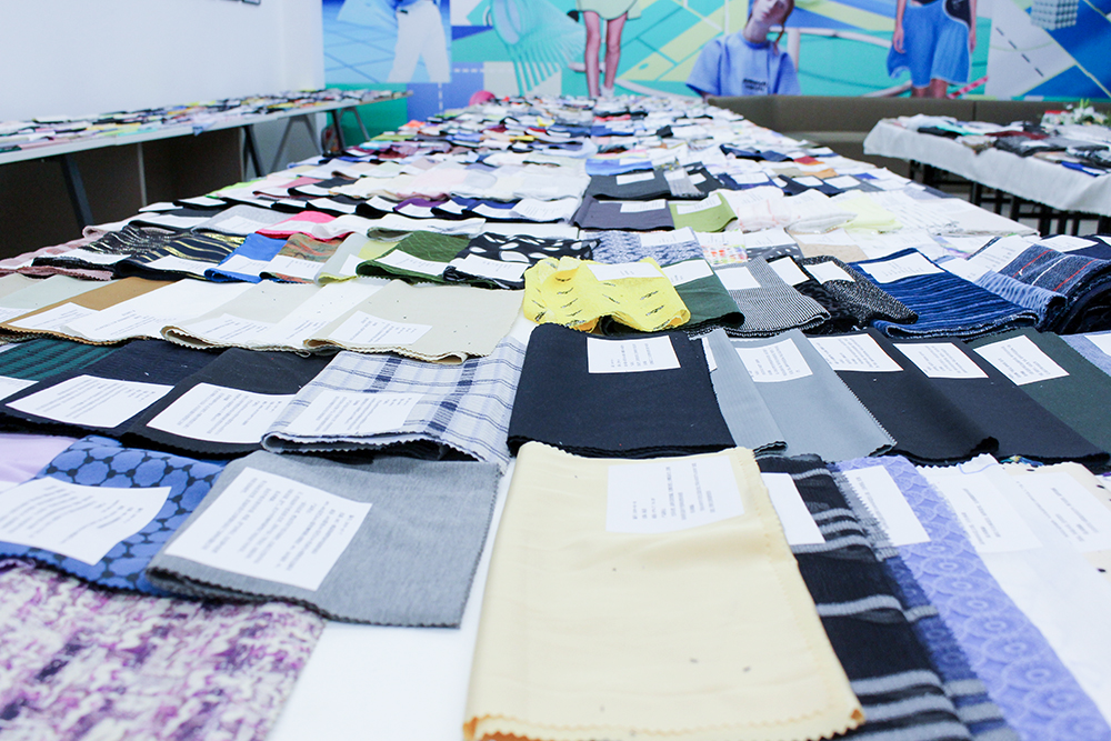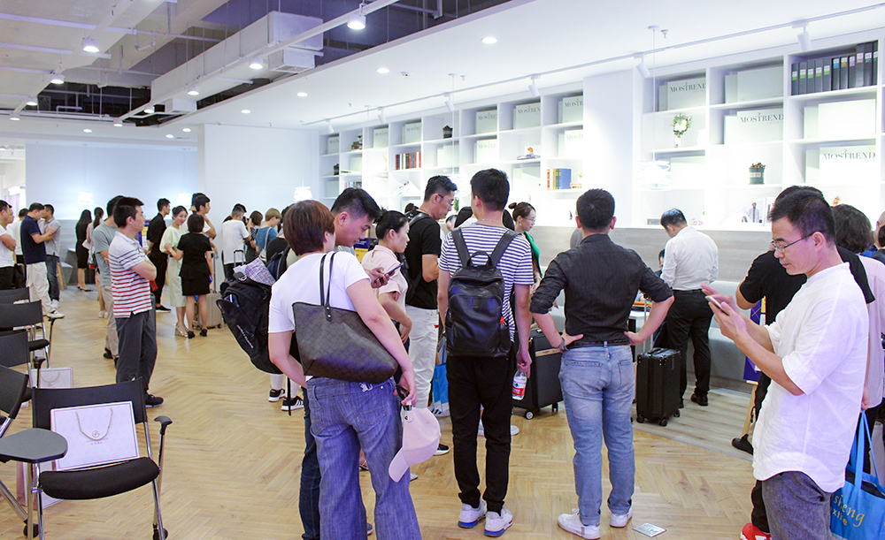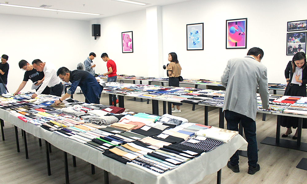 浙江依云纺织有限公司是第一家到场的面料企业,负责人周红丽介绍,公司主做全针织童装面料,与耐克、李宁、迪士尼、青蛙皇子等品牌均有合作。“我特地带了十几件样衣过来,希望能让品牌直观地感受到我们的面料品质,没想到现场人气这么火爆,大家都排着队和服装品牌对接。”