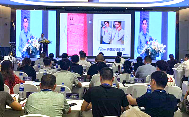 惠美线业副总经理刘良忠先生作《惠美2020再生纱线暨绿色纺织新品发布》报告
