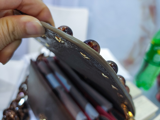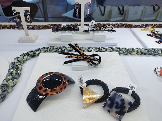 郑大煜表示,品牌起初专注于头饰,深受演艺界名人青睐,曾风靡一时的韩国偶像剧《来自星星的你》中,小姐姐全智贤头戴的发夹正是该品牌的产品。5年前为了拓展市场,在产品品类上扩充了包包。树脂纤维被用作包包的装饰或是背带等,相比金属材质,与人肌肤接触起来全无健康隐患,而且没有异味,非常环保。