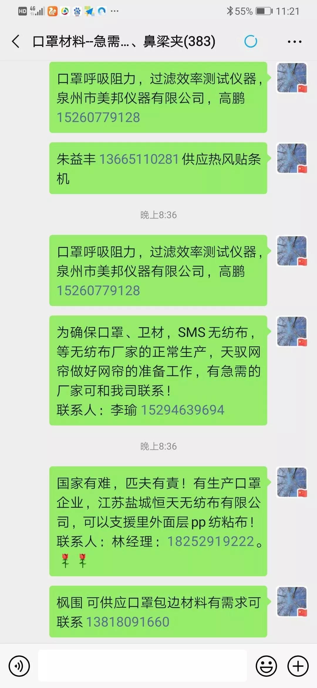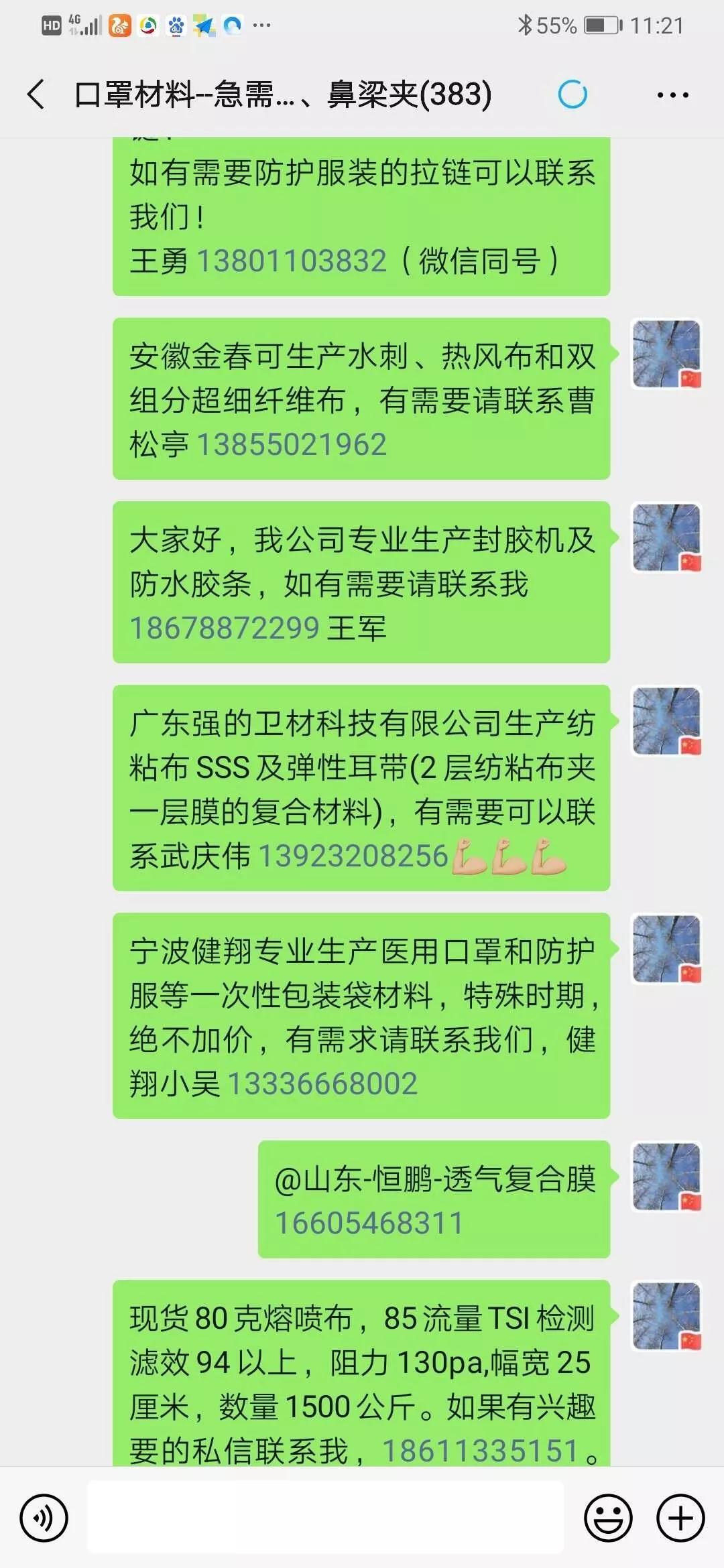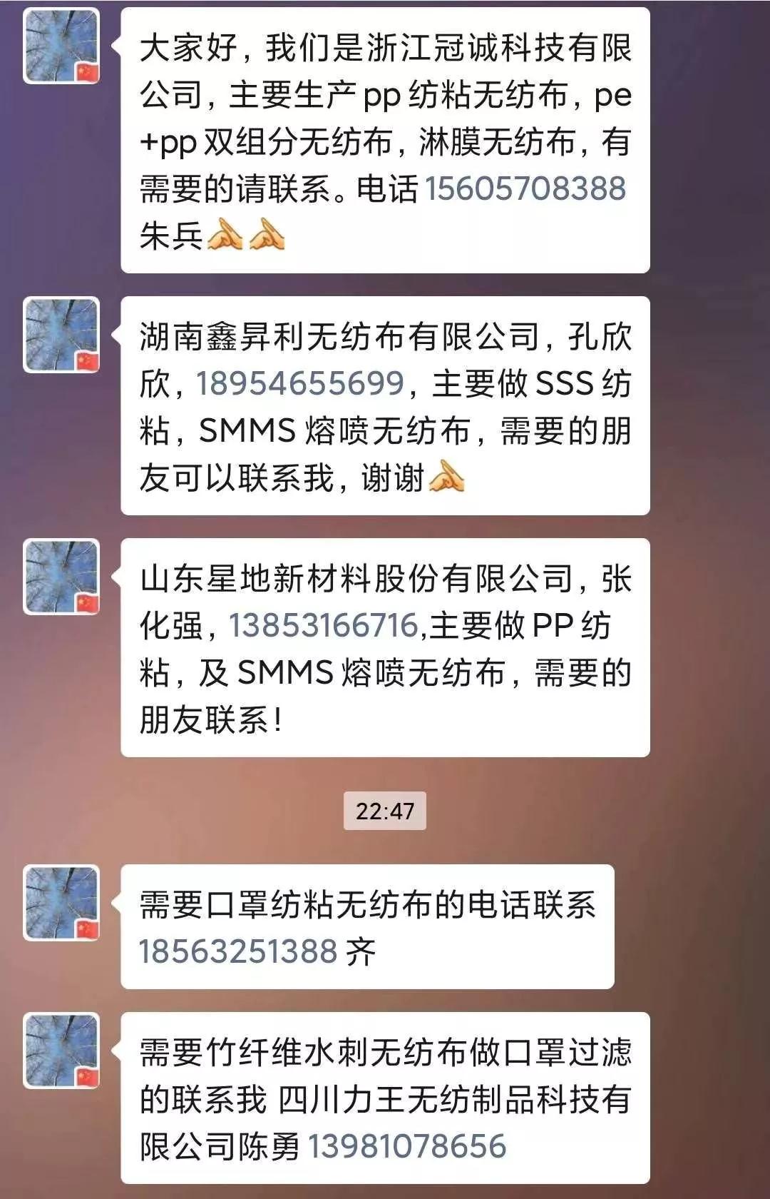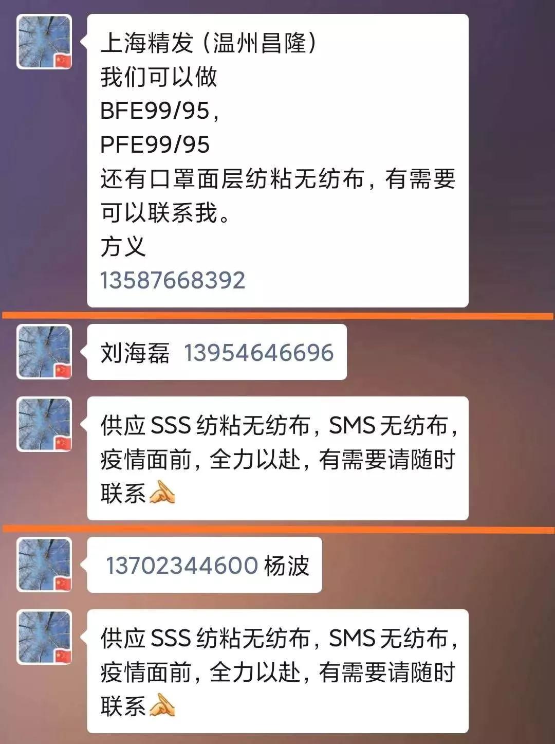 南海南新 也提供SS SMS 口罩面层,防护服原料以及满足BFE95,99,N95等级的熔喷材料,春节产线未停机。有需求可联系 15921763682 沈先生