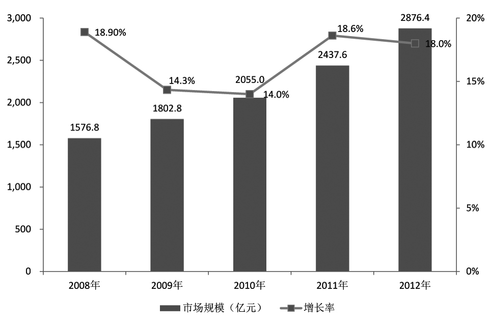 青春休闲服的主要消费人群是年龄在15~29岁的年轻人,随着消费习惯的转变,休闲服零售市场规模逐年增长。根据中华商业信息中心对全国重点大型零售企业统计数据测算,2012年我国服装市场消费休闲服占18.5%。