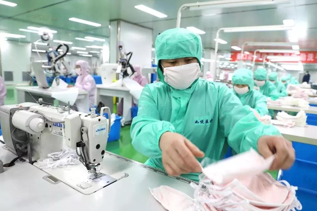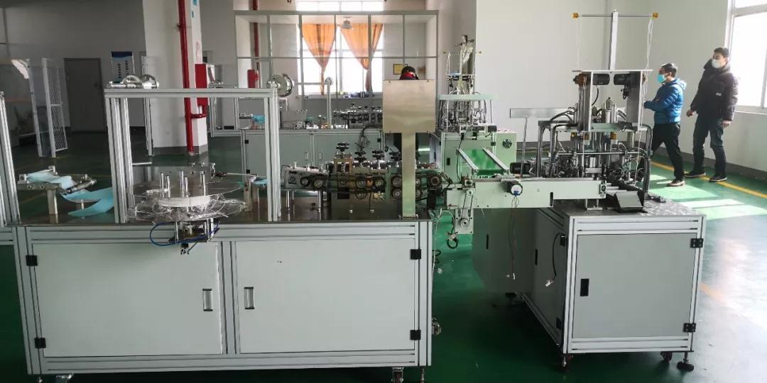 2月7日下午,海州开发区紧急协调,由鹰游集团旗下的连云港金典纺织科技有限公司外购回两条口罩全自动生产线。经过一系列突击性手段,鹰游集团24小时完成项目谈判和采购,48小时完成项目设备运输和恢复生产两条医用口罩生产线。2月10日16点两条生产线进行试产,成功投入生产后将日产10-15万只医用口罩。