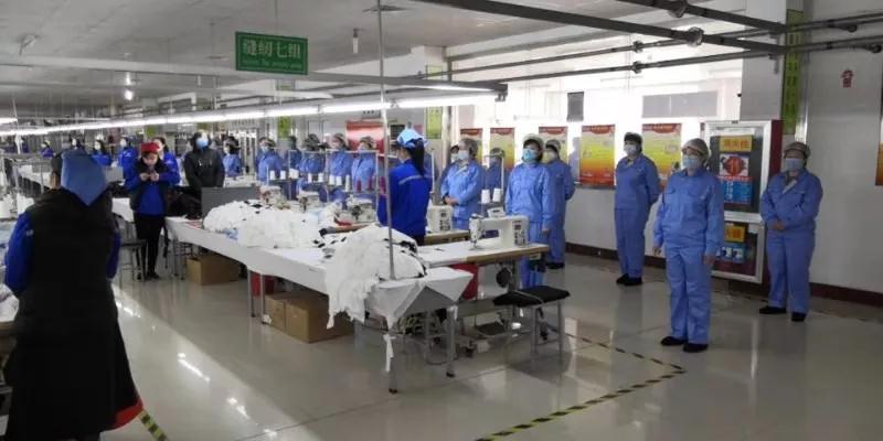 2月13日,在位于山东省青岛市即墨区的大型纺织企业青岛雪达集团有限公司,工人在车间内制作口罩。据雪达集团王显其副总介绍,目前集团已经完成生产设备改造,并对原有流水线进行了重新排列组合,样品已交相关部门鉴定。一期有望实现日产1.5万个口罩的目标。连日来,为助力新冠肺炎疫情防控,青岛市工业和信息化局调度雪达集团和即发集团两家纺织企业第一批转产口罩生产。当地通过帮助纺织企业协调解决原料供应、员工组织、设备采购等问题,将服装生产线按照标准要求,转为防疫工作需要的口罩生产线,为应对新冠肺炎疫情提物资提供保障。