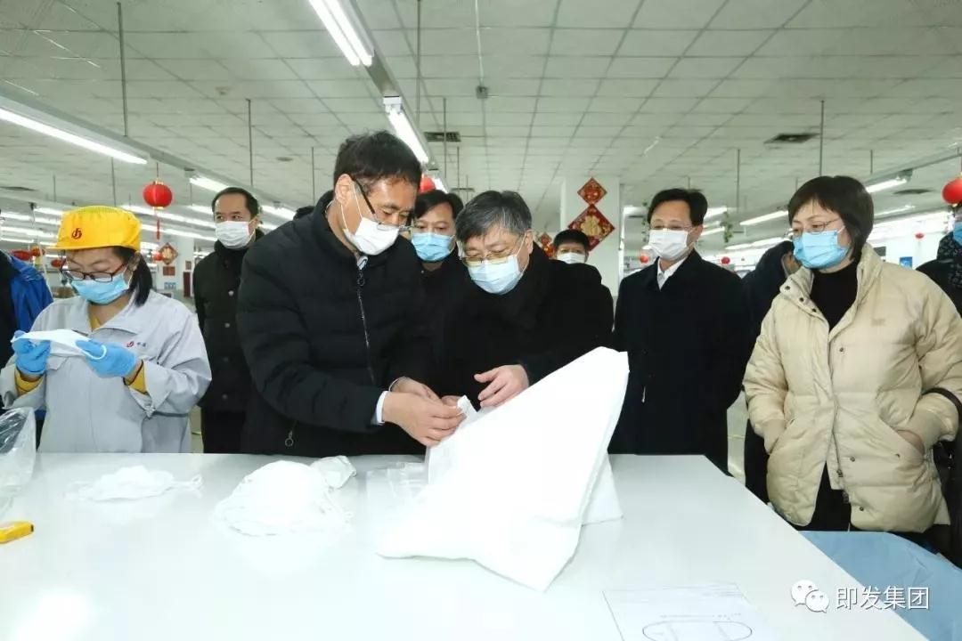 2月12日,青岛市副市长耿涛在即墨区委常委、副区长鞠朝友陪同下调研即发集团口罩生产工作。连日来,面对疫情防控口罩紧缺的情况,即发集团积极响应党中央关于鼓励有条件的企业转产防护用品的指示精神,提高政治站位,强化使命担当,发挥产业优势,弘扬工匠精神,通过紧急展开面料采购、生产线改造、设计研发、组织生产等工作,将服装生产线转变为防疫工作需要的口罩生产线,开足马力生产,为应对新冠肺炎疫情提物资供保障,以实际行动驰援疫情防控一线。 当前,疫情防控工作进入防疫和复工“两手抓”阶段,在科学防疫的前提下,即发集团坚决贯彻落实党中央、国务院和省、市、区党委政府的指示要求,全体干部职工,坚定信心、同舟共济、科学防控、精准施策、攻坚克难,坚持一手抓疫情防控,一手抓经济发展,公司建立了严格的防疫制度,狠抓内部管理,对节后复工、疫情报告、内部防控、物资配置、商务洽谈、会议活动等进行了统一规范,做到战“疫”与开工两不误,确保复工生产有序进行。