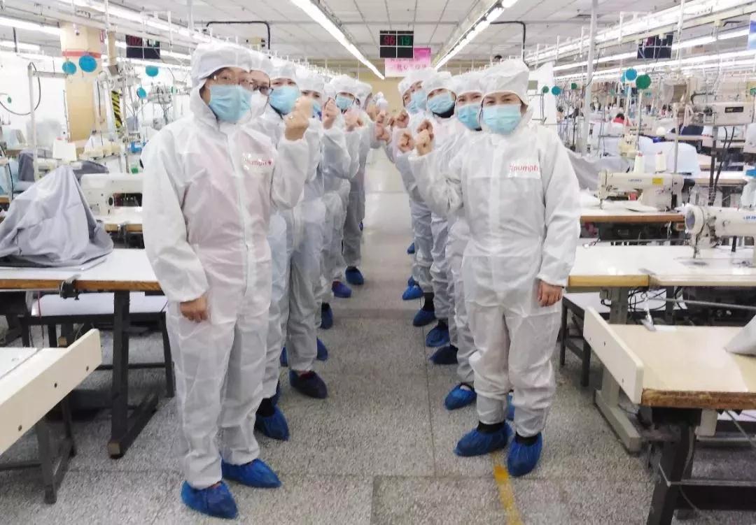 在接到政府相关部门的告急后,利郎集团第一时间召集各部门骨干,紧急成立利郎防护服生产制作小组。技术研发部、生产部、商品检测部、行政部等各个部门火速行动,紧急行动起来。快速引进全新专用设备35台,于一天内安装完毕并于当天完成样衣生产。三天内进入量产出品——严峻的疫情形势面前,利郎与斯兰集团、久久王食品、浔兴拉链等晋江企业携手,一起同时间赛跑,实现从无到有的专业医用防护服的转产。医用防护服技术要求之高,意味着利郎必须先解决无菌洁净车间、生产设备、面料调控等一系列问题。在泉州及晋江市政府部门协助指导下,几经周折皆一一克服困难。