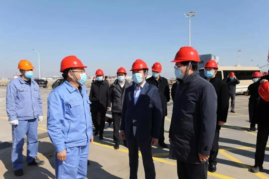 2月18日,在舟山督查疫情防控和复工复产工作的浙江省委书记车俊登上鱼山岛,检查舟山绿色石化基地浙石化项目疫情防控和生产建设情况,并慰问岛上员工。暖阳下的鱼山岛,塔器林立,生机勃勃,一期项目全面生产,二期项目有序建设。这是自2016年8月、2018年9后,车俊第三次到访鱼山岛。他来到工人们中间,亲切看望已返岗的建设者们,称赞大家在参与的是一项伟大的工程,希望大家一方面做好疫情防护,一方面为工程建设再立新功,并希望下次登岛的时候,项目二期已经建成。 督查过程中,车俊详细了解项目建设情况,仔细询问工人用餐怎么解决、防护物资是否充足、项目建设还有什么困难。车俊说,舟山绿色石化基地项目体量大、工人多,一定要严格做好各项防控措施,在安全可控的前提下加快建设,同时对标国际先进、对应市场需求,拉长产业链、提升价值链,努力打造国际化、绿色、炼化一体化的现代石化基地,带动上下游更多企业顺畅地复工复产。