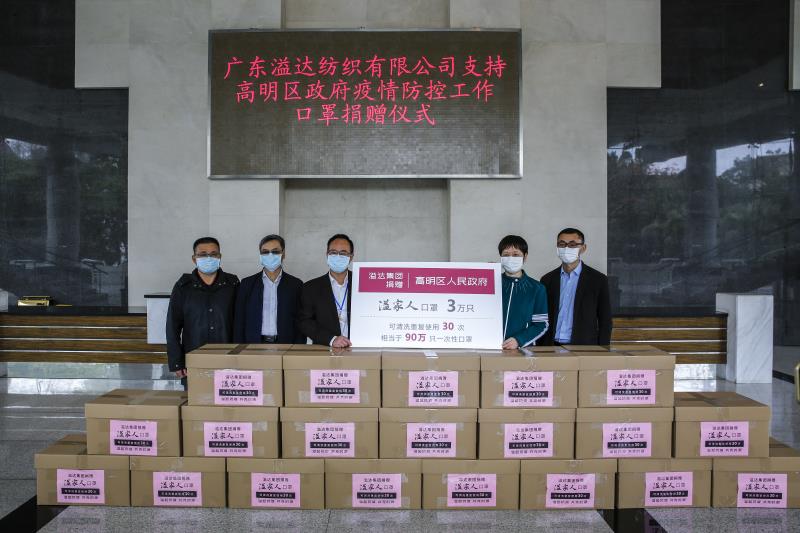 3月5日,广东溢达纺织有限公司向高明区人民政府捐赠了3万只口罩。这些口罩不简单,由溢达公司自行研发生产,每只口罩可以清洗重复使用30次。 高明区委常委、常务副区长、区新冠肺炎疫情防控指挥部办公室主任管雪代表高明区政府接收了这3万只口罩。 这一批名叫“溢家人”的可水洗口罩,口罩面料、抗菌处理及缝制均由溢达集团一条龙完成。最外层是纯棉布,做了防水抗病毒抗菌的处理,令到飞沫接触口罩最外层时不会被吸收。由于口罩主要由棉布组成,可以清洗重复使用30次。 据溢达集团研发中心副总监周立明博士介绍,该产品的面料也具有抗菌功能,口罩在清洗前杀菌率达到99% 。30次清洗后,还能达到90%的杀菌率。清洗的时候,我们需要把口罩放在水里,加入小量的洗衣液或者洗手液,浸泡十分钟到二十分钟,稍微轻柔地抹一下,再用清水过干净,晾干就可以了。不用揉,如果揉的话可以就会破坏里面的结构 。 据了解,溢达2月5号开始筹备研发,2月14号正式生产口罩,一边生产一边改进,平均一天能生产口罩约两万只。 广东溢达纺织有限公司总经理马伟萍表示:“溢达集团在中国区域内就有3万多名员工,每天一个口罩,一个月也用量很大,而且一次性口罩用完后存在不是很环保的情况。在这种情况下,我们的研发团队便研发了可以水洗30次的口罩,解决内部员工的需求。上周我们也向佛山市政府捐了5万个口罩。” 目前,溢达约有1万8千人复工,防疫和复工两手抓的同时,还能兼顾抗疫物资生产。口罩介绍材质:1、外层为抗病毒抗菌防水纯棉布2、中间层为聚丙烯无纺布,补充棉布层过滤效果3、内层为弹力纤维棉布,增加亲肤舒适感特点:可清洗重复使用30次,远比一次性口罩更环保耐用规格:2只/袋,均码及折叠式设计,舒适贴面防护作用:有效抵抗部分病毒病菌、阻隔飞沫生产方:口罩面料、抗菌处理及缝制均由溢达集团一条龙生产注意!这口罩并非医用外科口罩的替代品,如果你是身处有高度可能接触不同类型病毒的环境,或本身有病患等,请使用防护性更高的口罩。