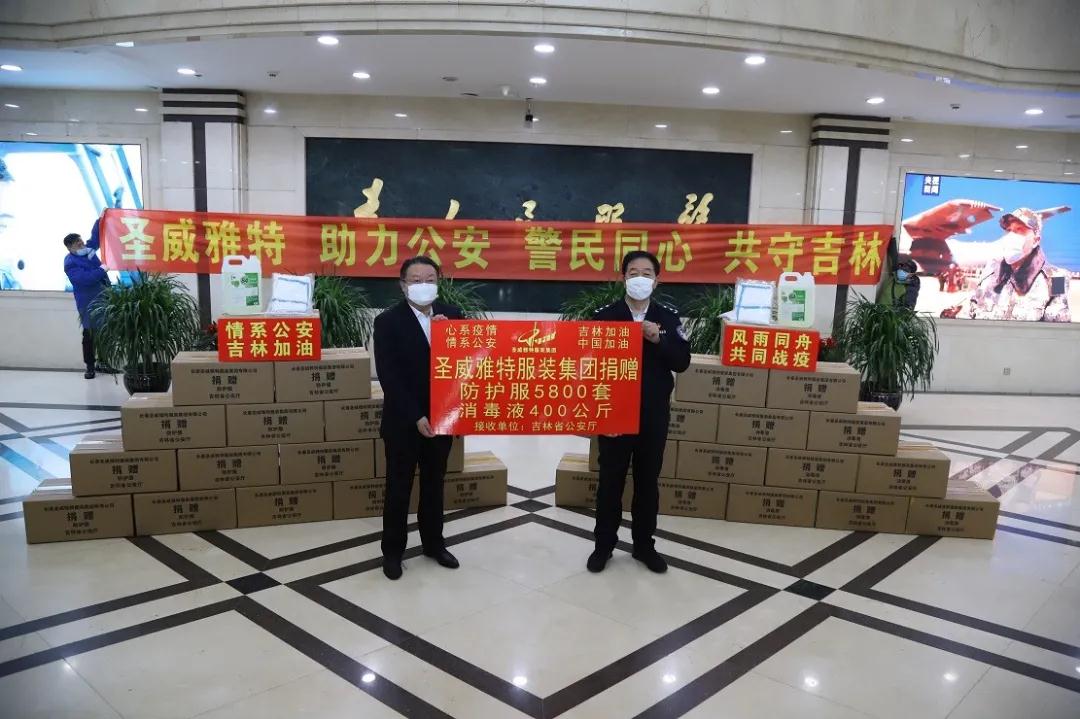 长春圣威雅特向吉林省公安厅捐赠防疫物资 3月2日,长春圣威雅特服装集团有限公司向吉林省公安厅捐赠防护服、消毒等应急防疫物资。吉林省公安厅二级巡视员孙全兴代表省公安厅接受捐赠。吉林省公安厅警务保障部有关负责同志参加捐赠仪式。 自疫情防控工作开展以来,吉林省公安民警始终奋战在防疫一线,不畏风险,不辞辛苦,全力守护社会稳定平安。