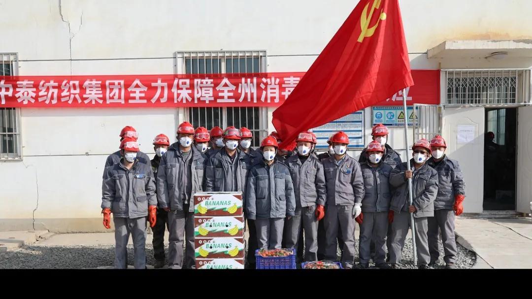承压而上 战疫复工 两手抓两手硬 《中国纺织》:中泰纺织集团是疆内大型纺织企业,员工数量众多,面对突如其来的疫情中泰纺织集团是如何应对的?作为新疆本土国企,中泰纺织集团又是如何帮助所属地区渡过疫情难关? 冯文军:在新冠肺炎这场突如其来的疫情面前,中泰纺织集团党委把生产园区各族员工的身体健康和生命安全放在第一位。公司防控指挥部牵头编制了《新疆中泰纺织集团发现新型冠状病毒感染的肺炎事件应急预案》《原材料运输车辆驾驶员新型冠状病毒防疫管控工作方案》,不断加强演练,完善预案。目标清晰、责任明确,党员干部和各部门齐心协力、产供销储运联动。 得知巴州地界防控物资紧缺,特别是消毒液告急的消息后,公司党委决定拿出生产所用原料,临时成立两个党员突击队,增加次氯酸钠和过氧化氢调配任务,32名员工放弃休假,生产现场连轴转,全力保障消毒液调配、灌装与发放工作,不讲价钱,不计成本,一致抗“疫”,一个月内无偿提供消毒液547.7吨、口罩13400个、洗手液1440瓶、防护服400套、护目镜200副,解决燃眉之急。 疫情无情人有情,在防疫面前,中泰纺织集团从公司领导到一线员工,每个人都传递着一股硬核力量,各族干部员工坚定地团结在党的旗帜下,战斗在一线,坚守在各自的工作岗位上,用实际行动为疫情防控阻击战贡献力量。