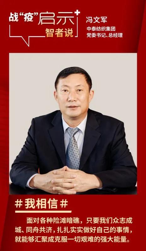 作为“一带一路”核心地区之一,新疆的发展一直备受关注, 纺织服装产业更是在众多政策叠加的带动下突飞猛进。在新疆大力发展纺织服装产业带动就业的浪潮中,新疆中泰纺织集团有限公司(以下简称“中泰纺织集团”)顺势而为,自我变革,一路成长得到诸多赞誉,成为新疆纺织服装产业的一面旗帜。 而在疫情之下,作为本土企业,中泰纺织集团是如何做到:守土有责、守土担责、守土尽责的呢?由于地处新疆,特殊的地理位置企业复工复产情况如何?又面临哪些特殊困难?带着对新疆的众多关注与疑问,本期“战‘疫’启示智者说”栏目采访了中泰纺织集团党委书记、总经理冯文军,听听新疆代表企业的心声与思考。