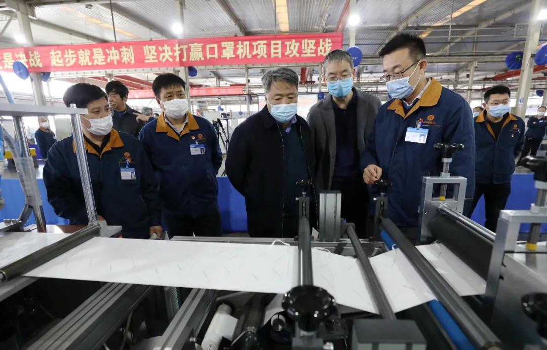 会上,毛发青对莅临本次鉴定会的各位领导和专家表示热烈欢迎和由衷的感谢!他指出,随着新冠疫情的持续蔓延,在国机集团和恒天集团的统一安排下,经纬纺机闻令而动,第一时间抽调精干力量组成N95口罩机项目攻关组,对N95口罩机开展技术攻关,以期尽早为全国上下抗击疫情提供口罩机装备支持。此次N95口罩机项目,时间紧、任务重,责任重大、意义深远!自2月11日起,从接到命令,到组建项目组;从组织原材料,到样机研制;从零部件生产,到口罩机组装,再到最后设备安装调试,前后仅用时20日即成功开发出了半自动N95口罩机,今天又成功研制了全自动N95高端立体口罩机,接受各位专家的鉴定。他表示,经纬纺机将以各位专家的肯定作为经纬前进的动力,认真抓好产品质量,为助力打赢抗击疫情的战斗贡献更强的经纬力量!