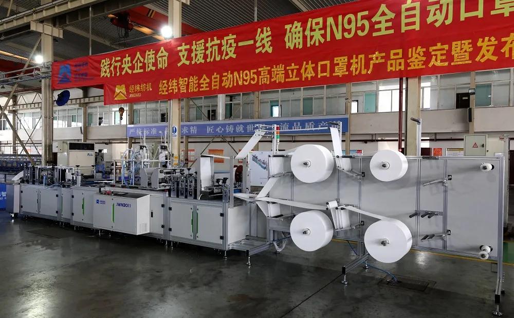| 弥补行业高端制造不足,经纬纺机全自动N95高端立体口罩机顺利通过产品鉴定 | | 作者:中国纺织 时间:2020-03-18 评论(0) | | 3月17日下午,经纬纺织机械股份有限公司研制的“JWN3011型全自动N95高端立体口罩机”顺利通过了由中国纺织机械协会组织的样机鉴定。该产品的成功鉴定,标志着经纬纺机正式具备N95口罩机产品系列化能力,代表经纬纺机N95口罩机技术攻关及产能突破任务取得了阶段性胜利。 鉴定会通过现场结合视频会的形式进行。中国纺织工业联合会党委书记兼秘书长高勇,中国纺织机械协会会长顾平、副会长侯曦,中国纺织工程学会纺机专业委员会教授级高工祝宪民,中国机器人产业联盟秘书长郝玉成,恒天集团科技发展部副总经理贺荣贵,经纬纺机党委书记、董事长吴旭东,经纬纺机总经理毛发青,经纬纺机副总经理杨华明以及N95口罩机技术攻关工作组成员、经纬智能公司相关领导和鉴定专家组成员出席会议。鉴定会由中国纺织机械协会副会长侯曦主持。