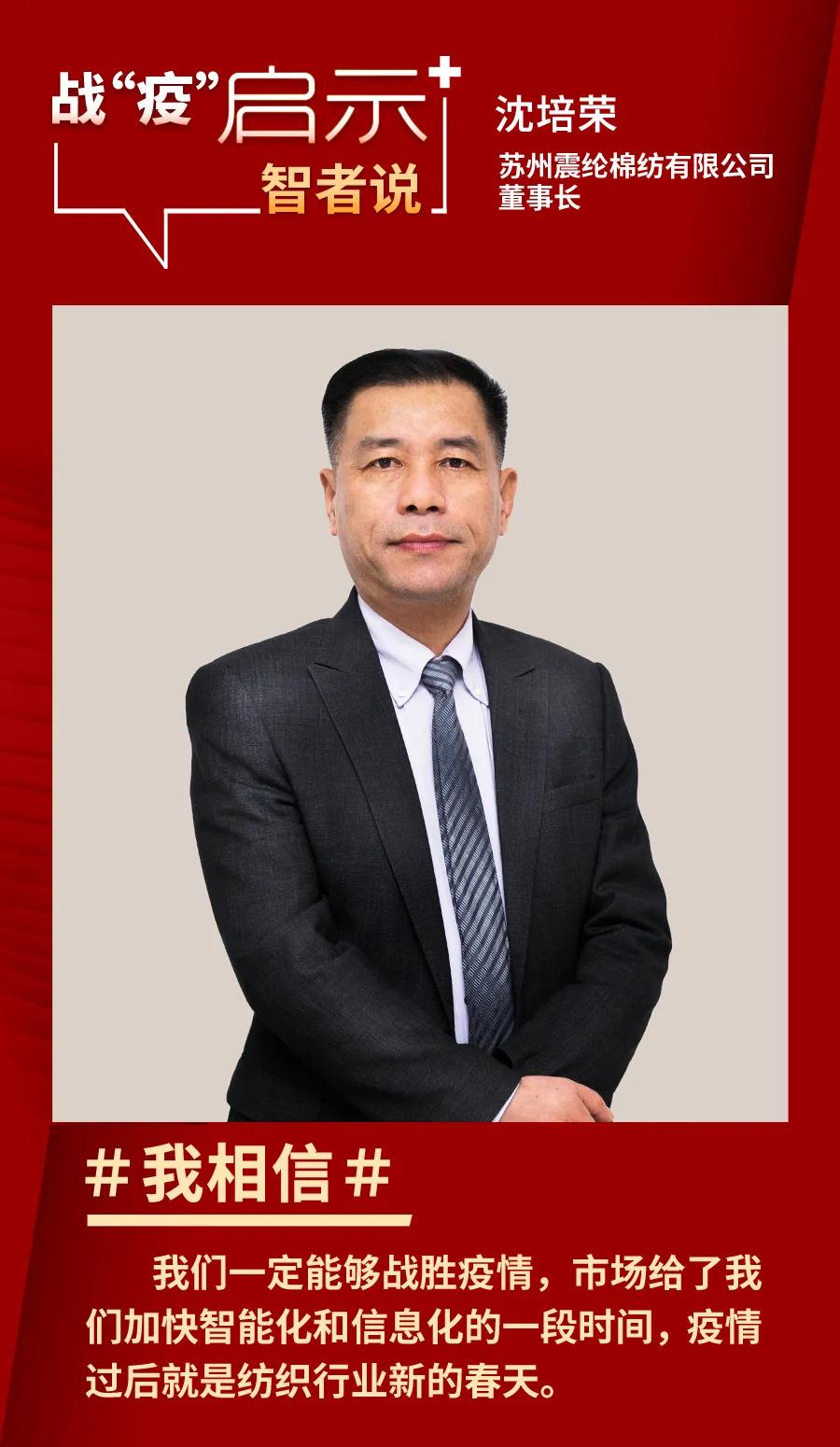 在全球疫情不断升级的严峻形势面前,苏州震纶棉纺有限公司认真贯彻上级政府部署的各项防疫要求,坚定信心、同舟共济、科学防治、精准施策,扎扎实实做好企业复工疫情防控工作,以高昂的斗志,纵向到底,横向到边的防疫管理要求,全面打响疫情防控阻击战。 与此同时,作为纺织产业链上游工厂,震纶棉纺一直以来都为下游纺织企业提供着优质产品,并保持着精益化和差异化的产品定位。在本轮疫情的影响下,上游企业应如何发挥稳定的供应作用,开足马力为国计民生产业提供强有力的保障,苏州震纶棉纺有限公司董事长沈培荣就企业如何在抗疫同时持续加快推进智能化和信息化发展,以期为企业的明天赢得更持久的发展进行了介绍。