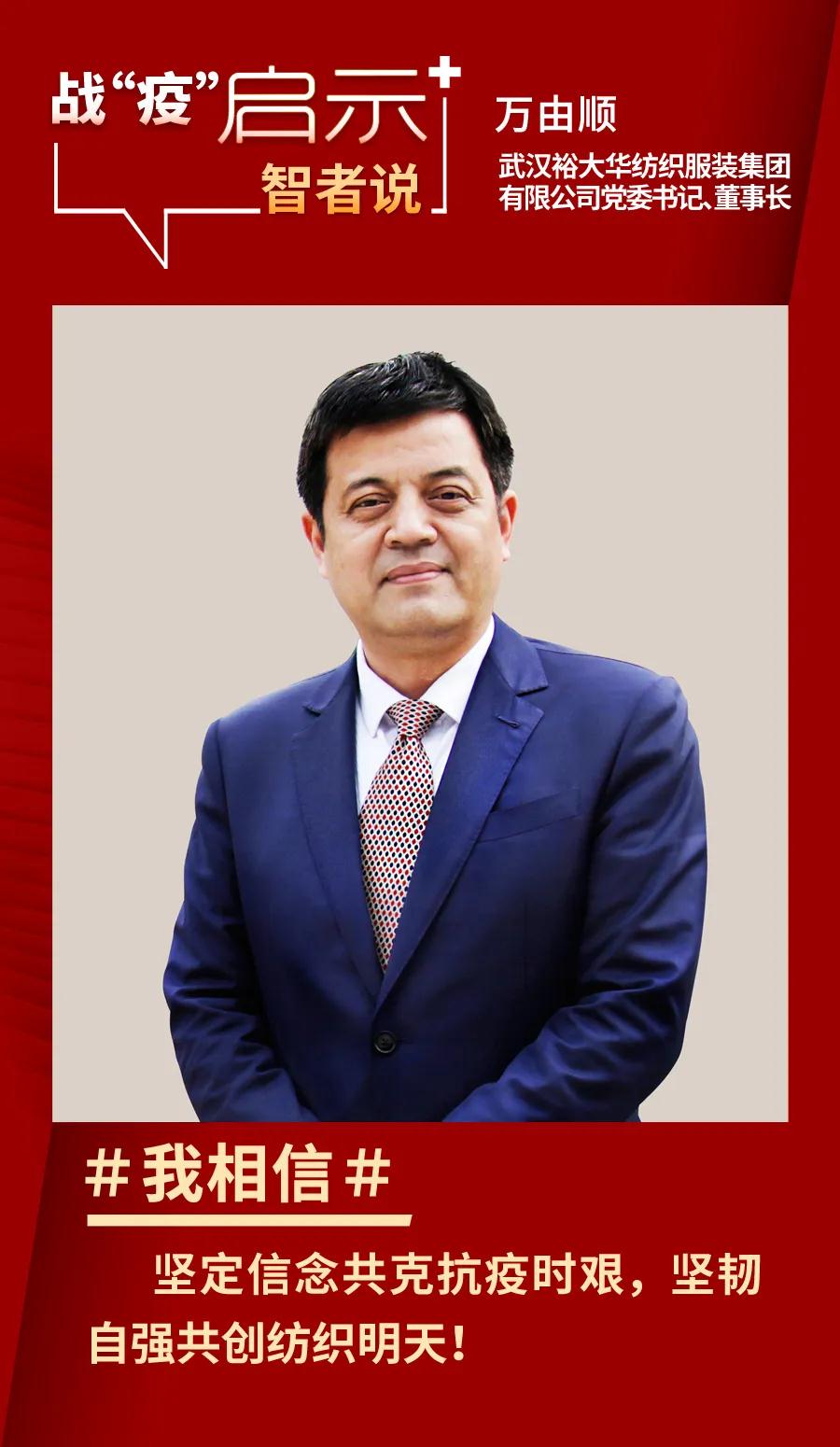 2020年是全面建成小康社会,完成第一个百年目标的收官之年,同时也是纺织强国目标达成之年。但是,新冠肺炎这场席卷全球的“黑天鹅”事件为2020年本应隆重的收官凝重地画上了坎坷的一笔。 当前,国外疫情形势愈发严峻,国内已经基本可控,纺织行业也全面进入“复工模式”,但出口型企业的生存情况堪忧......如何迅速调整战术“夺回失去的一个月”?如何在不确定性与日俱增的当下适时做出调整?对于这场疫情我们有着怎样的追问与反思?2020年的态势又该如何预判?疫情之下,这些问题不仅是当下行业关注的焦点,也是“后疫情时期”企业发展的着眼点。 为凝聚行业信心,启示行业前程,《中国纺织》杂志特推出“战‘疫’启示智者说”系列专题报道,并在《中国纺织》新媒体同步发布。历时半个月,《中国纺织》杂志记者采访近50家纺织产业链各环节龙头企业,并在纺织服装企业朋友圈中发起“我相信”话题接力,得到热烈反响。我们怎样被改变,时代就会怎样被铭记。 此刻,我们都相信这场疫情最终会过去,这一份“我相信”有着非常重要的作用。希望他们的每一个“我相信”能在此刻给予每一个深处困境的你以力量。让我们一起携手,在逆境中积蓄实力,风雨压不垮,苦难中开花。邱亚夫周晔珺刘子斌万由顺严华荣吴华新顾仁薛伟成