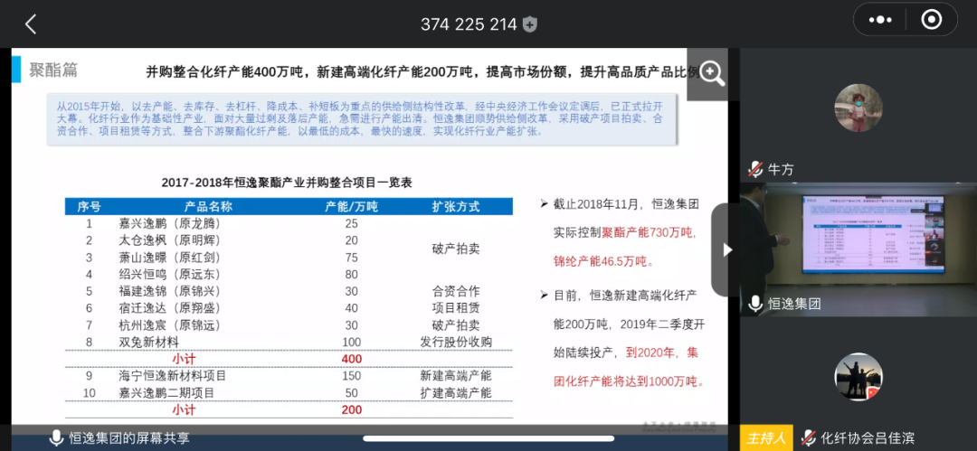 今天,由中国化学纤维工业协会主办的一场化纤行业校企线上招聘会在众多期待中如约上线。这已经是中国化学纤维工业协会召开的第二次线上校企招聘会,会议由中国化学纤维工业协会副秘书长吕佳滨主持,参与本次线上招聘会的化纤企业有:浙江恒逸集团有限公司、威化光威复合材料股份有限公司、福建永荣控股集团有限公司、中复神鹰碳纤维有限责任公司、新凤鸣集团股份有限公司。