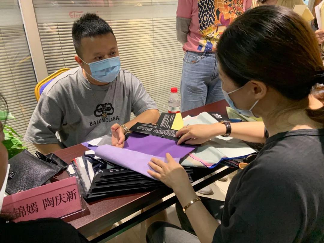 此次参加云展会的吴江市锦通纺织有限公司的赵总也带着他家的爆款面料来到对接会现场,他说道:“我们公司主要做高端时尚面料,对接国内一二线的快时尚品牌。这次对接会上的服装企业采购时尚女装面料的偏多,所以我们的产品很符合他们的口味,已经有好几家企业向我发出邀请,让我们带着更多的产品去杭州跟他们深入交流,寻找新的合作模式!”对于此次线上线下双渠道联动,赵总赞叹不已,他表示:“在疫情的大环境下,采取线上线下的供采新模式,更灵活、精准,有利于企业逆势前行。”