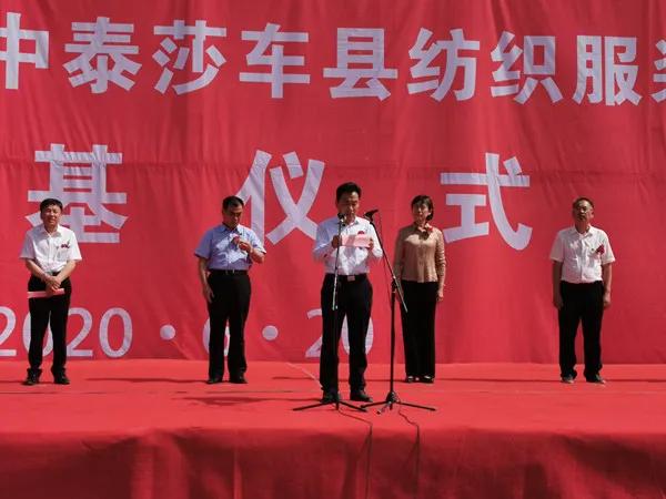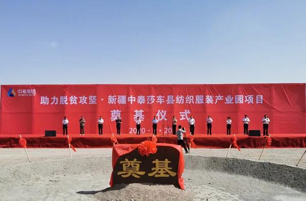| 【助力脱贫攻坚】新疆中泰莎车县纺织服装产业园项目在莎车县奠基 | | 作者:中国纺织 时间:2020-06-22 评论(0) | | 6月20日,为全面贯彻落实新时代党的治疆方略,推进自治区发展纺织服装产业促进百万人就业工程,助力打赢脱贫攻坚战,新疆中泰莎车县纺织服装产业园项目在莎车县奠基。 自治区人民政府党组成员黄三平,自治区国资委党委副书记、主任张红彦,自治区发改委党组成员、副主任毛辉,自治区工信厅一级巡视员彭季,自治区自然资源厅党组成员、副厅长艾尔肯·吾守尔,喀什地委委员、行署副专员冯建伟,喀什地委委员、莎车县委书记范宝军,中泰集团党委书记、董事长王洪欣,中泰集团党委委员、副总经理梁斌参加奠基仪式。