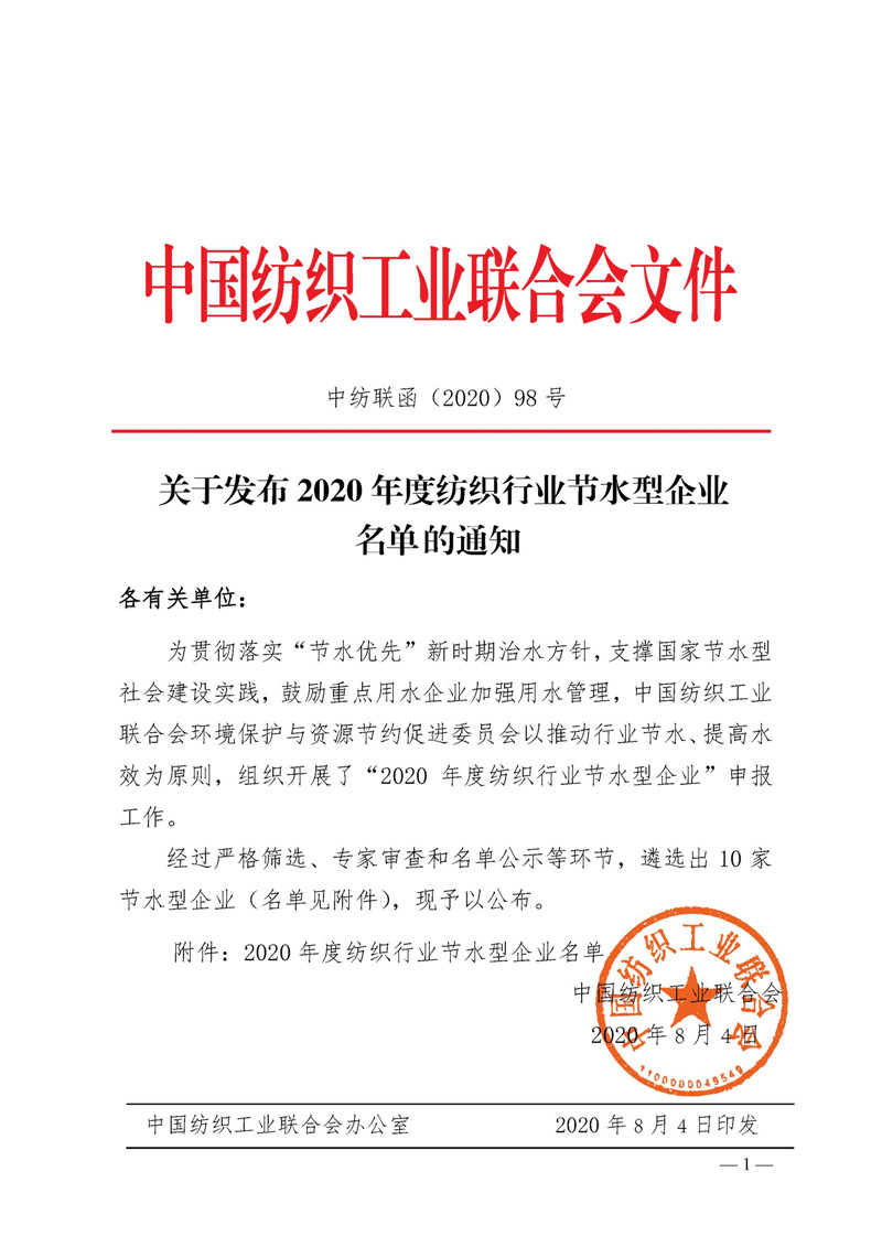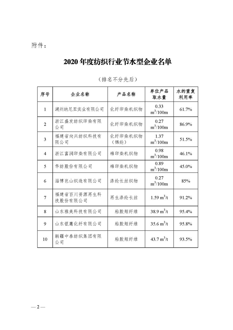 中国纺联发布2020年度纺织行业节水型企业名单,湖州纳尼亚等10家上榜