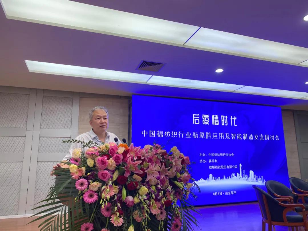 “十三五”以来,我国棉纺织行业以“科技、绿色、时尚”新定位,大力推进行业“新原料”“智能化”的创新与应用, 并取得了显著成绩。在世界范围疫情冲击之下,在国际政治经济大变局之下,在诸多挑战与困难面前,纺织企业该如何科学研判市场、更好应用“新原料”,发挥智能制造优势,助力高质量发展?8 月3 日,由中国棉纺织行业协会主办、赛得利集团、魏桥纺织股份有限公司协办的“后疫情时代,中国棉纺织行业新原料应用及智能制造交流研讨会”在山东邹平召开,为处于迷茫之中的企业指明了方向。