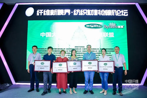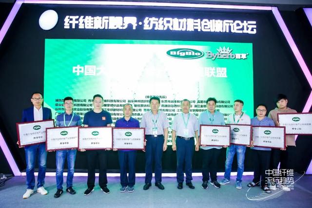 致辞之后,高勇、伏广伟、郑俊林、刘建国、黄效华、韩光亭、孙爱云上台共同开启了中国大生物纤维产业发展联盟的启动仪式。在全场嘉宾的见证下,中国大生物纤维产业发展联盟正式成立。