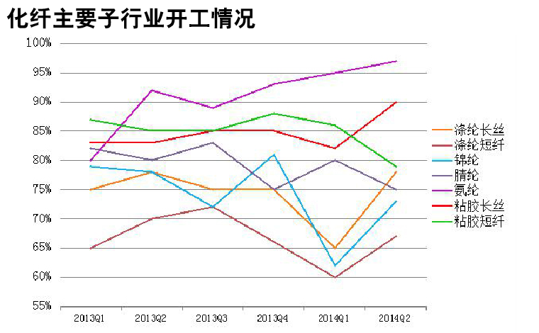 根据中国化学纤维工业协会的报告,2014年1~6月中国化纤产量稳定,行业效益较今年第一季度有所好转,聚酯新增产能262万吨,上游出现供需不平衡现象,部分大型企业出现资金链问题......协会预测全年产量4350万吨,增长6%左右,利润总额比上年有所增长,运行质量将出现好转。