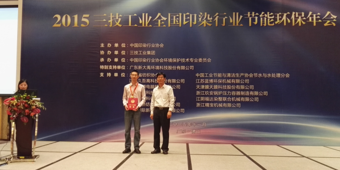 为了进一步认清“十二五”以来纺织印染行业节能环保所面临的形势以及“十三五”国家环保管理政策的走势,继续在全行业深入交流节能环保经验,推进节能环保新技术和新工艺,加速行业绿色转型。11月4—5日,由中国印染行业协会主办,三技工业集团协办,中国印染行业协会环境保护技术专业委员会承办的2015三技工业全国印染行业节能环保年会在广东佛山举行。中国工程院院士周翔,国家环境保护部科技标准司副巡视员胥树凡,中国印染行业协会会长陈志华,中国印染行业协会名誉会长李金宝,工业和信息化部消费品司纺织处纵瑞龙,国家环境保护部总量司史姝琼,中国印染行业协会副会长李瑞萍、秘书长林琳,广东省纺织协会秘书长陈茜微等有关领导以及青岛凤凰印染有限公司董事长戴守华、盛虹集团有限公司副董事长唐金奎、浙江三元纺织有限公司董事长李成荣、三技工业集团董事长郑永忠等企业、科研院所代表300多人出席了本次活动。