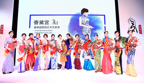 就这样,一群天天穿旗袍的女人,聚拢在龚航宇身边。香黛宫艺术团则成了他们办诗社、搞论坛、品茶读书的世外桃源。而以东方的视野,结合西方裁剪和制版工艺创立的香黛宫华服,自创立之初便受到了业界及消费者的喜爱。从2014年中国车模国际大赛唯一指定旗袍,到国际小姐全国冠军唯一指定旗袍,到环球夫人大赛指定旗袍品牌,到受邀2015米兰世博会参展,到走秀2015中国国际时装周,香黛宫享誉海内外。