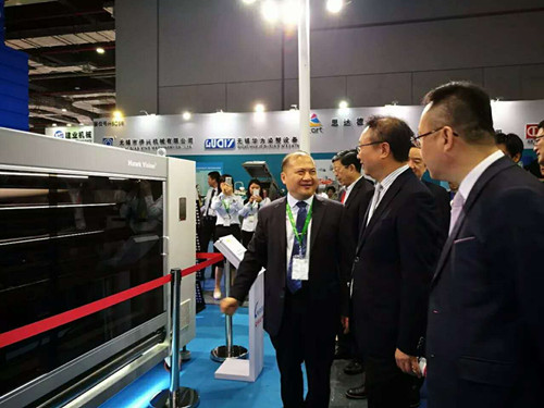 中国纺织工业联合会会长孙瑞哲听了顾仁介绍后对该设备也表示了高度赞赏,他说,常州宏大科技集团是国内印染行业智能制造风向的引领者,代表着我国印染行业智能装备研发与制造的最高水平,此次展出的Hawkvision智能图像整花整纬机中的智能图像整花技术是一项重大发明,它的推出将大大提升纺织品的加工质量标准。另外,他也表示,希望常州宏大科技集团在印染智能制造方面继续发挥自己的优势,为国内印染企业新一轮的产业升级提供支撑。 |