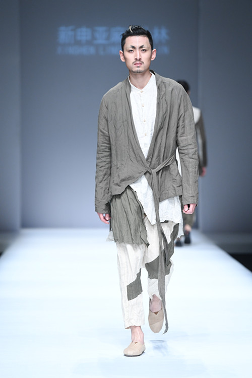 流浪,不是落魄无依,而是追求心灵世界的自由驰骋;贵族,不是高高在上,而是有普世美好生活的强烈使命感。流浪贵族远离繁复尘世,心怀浪漫主义者的坚定信仰,向着心中自然高贵的生活方式不断追寻。设计师孙林发现了他们与亚麻的共通性,将亚麻的质朴、脱俗、高贵与现代时尚相结合。“精神的自由,民俗的融合”,纯朴的设计理念来自对亚麻文化的初心。绿色舒适的亚麻面料不需过多繁复加工,中国风的设计还原人与自然的最初样貌。这是一场重塑流浪文化的心灵冥想,这是都市中回归自然的亚麻盛宴。
