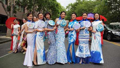 与此同期,10月28号,作为新西兰奥克兰年度最大盛事之一,25万参与了2016奥克兰圣诞大游行。其中,由50位旗袍美女组成旗袍方阵一路上受到观看者的欢呼,旗袍美女组成的20米旗袍长卷顿时惊艳了全世界。特别是香黛宫为活动设计定制的中国青花瓷旗袍,走在队伍的最前面,美女们手持青花团扇,身着香黛宫青花旗袍,婉约典雅清新,龚航宇再次以旗袍串起大美世界,担起了“文化大使”的重任。就在去年的7月新西兰总督与夫人来华访问期间,香黛宫更是作为总督夫人钦点的品牌,到访香黛宫由龚航宇设计定制了多套华服及丝巾。