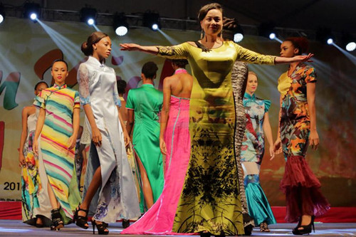 庆典现场,中国现代旗袍代表人物龚航宇带着她设计的既有中国传统旗袍特色,又充分体现现代生活方式的现代旗袍,融合诗歌、舞蹈、书法等多种形式相结合的中国传统文化,淋漓尽致的演绎了传统与现代、时尚与古典竞相绽放的东方艺术之美。  而来自世界各地不同肤色的模特们,在新式极具设计感的旗袍演绎下相得益彰,旗袍下的各国美女或大气高贵,或 典雅內秀,或炫酷帅气,因为旗袍,而光彩夺目,融合唯美。“因为社会上对旗袍的片面认识,阻碍了旗袍的全面推广,我就是想突破旗袍给人的传统印象,让旗袍走入我们生活的方方面面。旗袍不应只是中国文化的符号,她更应该是全世界美丽女性重新认识自我,塑造全新形象,展现自信风采的‘肢体语言’。我要为中国传统文化走向世界‘代言’。”龚航宇以别具匠心的新式旗袍的让不同女性穿出了自我新风尚。