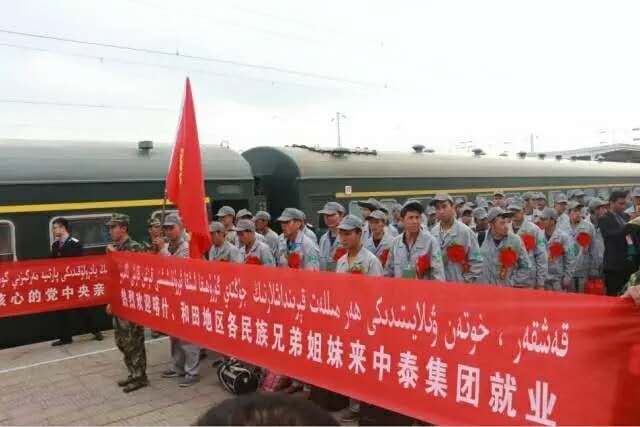 此次中泰集团计划接收安置喀什、和田地区首批1000名少数民族员工,其中安排新疆富丽震纶各少数民族员工126名。 州党委书记李刚,自治区人社厅巡视员肖明,自治区国资委第一监事会主席谢蓉,州党委副书记、政法委书记俱伟,州党委常委、组织部部长王久忠,副州长莎茹以及新疆富丽达纤维有限公司总经理冯文军、新疆富丽震纶棉纺有限公司常务副总经理范斌等企业领导到火车站参加欢迎仪式,并与喀什、和田地区带队干部、务工代表亲切握手,欢迎他们到巴州库尔勒工作生活。