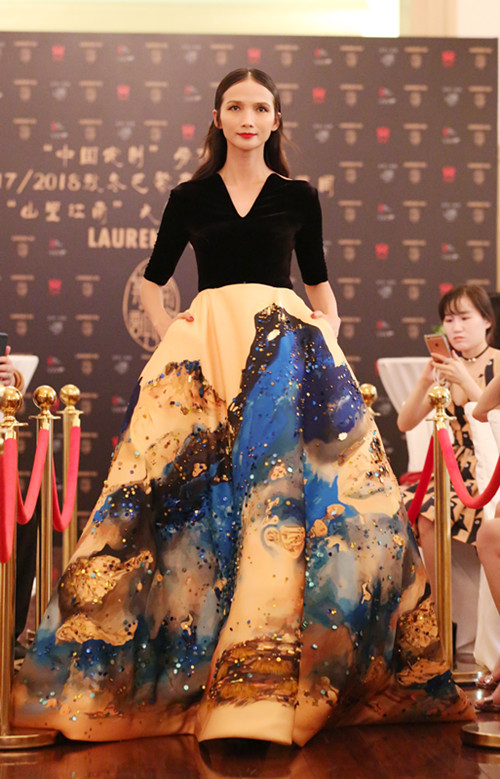 这次大秀展示的作品不同于以往劳伦斯·许的设计,用他的话说,是从以前的琳琅满目走向了优雅简约。城市的喧嚣和焦躁,使他想要一次游走,去看看祖国的大好河山,让心灵呼吸一下。所以这次大秀的主题定为“山里江南”,38套高定礼服承载着他的“田园梦”,带领所有人进行一场超越时空的美妙旅行,让大家看到中国河山与中国文化。
