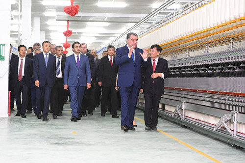 从2014年3月到塔吉克斯坦考察,7月和塔吉克斯坦国家工业部签订协议,12月19号中泰新丝路塔吉克斯坦农业纺织产业园项目奠基,到2015年4月2号项目正式开工,9月30号两座扎花车正式投产,棉花试种超越了原苏联时期的棉花产量,再到2016年8月31日6万纱锭项目投产,塔吉克斯坦总统拉赫蒙出席并亲自按下开机按钮;9月21日塔吉克斯坦总理科希尔·拉苏尔佐达点名来这里参观……沿着“一带一路”,中泰集团以兵地融合、互利共赢的模式,用实际行动走出了创新发展的喜人局面。