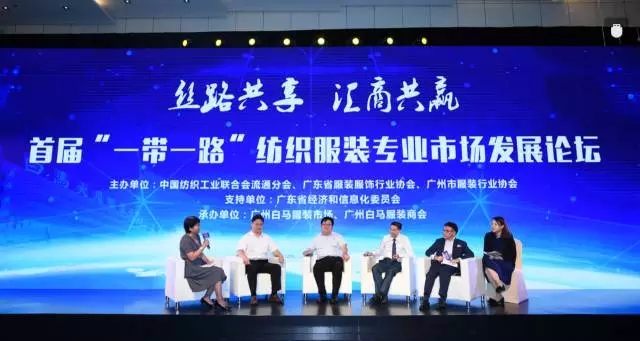 8月20日下午,由中国纺织工业联合会流通分会、广东省服装服饰行业协会、广州市服装行业协会共同主办的首届“一带一路”纺织服装专业市场发展论坛于广州白马服装市场隆重举行。