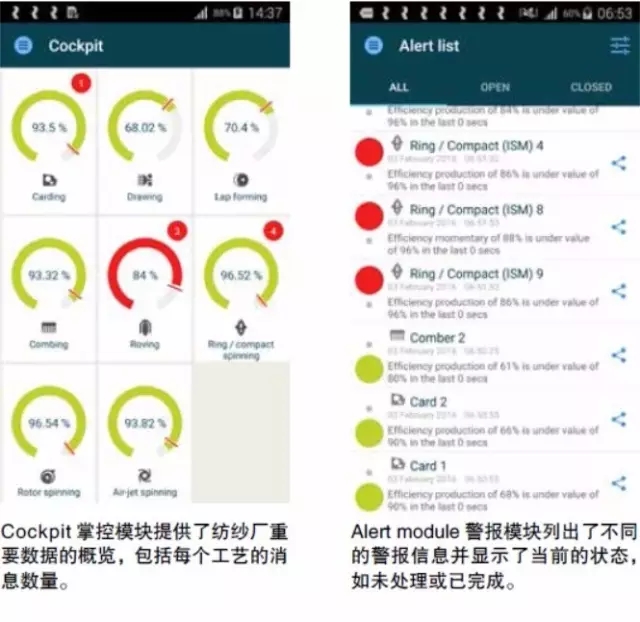 物联网简而言之就是物物相连的互联网,将物品通过电子设备、软件或传感器连接至某一网络。从而,这些物品能收集并交换数据。物联网已不再遥不可及,纱线生产商对此也有所关注。立达在其SPIDERweb 蛛网纱厂监控系统中设计了alert 警报和Cockpit module 掌控模块以及Client 客户端模块,在这一领域迈出了第一步。 Alert 警报和Cockpit module 掌控模块:始终保持消息畅通 配备Cockpit module 掌控模块的移动应用程序使纺纱厂员工能实时监测纺纱厂的重要数据。相关数据每隔两分钟就会传送到智能手机上。随时可以获取一份当前生产线所有机器效率的概况资料。 此外,还可提供最近5 个班次的生产和效率数据。用户通过这一视图,就可以区分各工序的概览和所纺不同品种的概览。 纺纱厂管理部门确定相关的临界值,一旦超过或低于临界值,用户将收到来自Alert module 警报模块的短消息。用户始终可以与生产相同批次的其他机器进行对比,在此情况下可链接环境数据如温湿度在此期间的变化。从而,用户可以对警报做出分类分析,扩展或授权处理,从而使相关人员能采取相应的措施。Client module 客户端模块:随时随地移动使用 世界各地的工业企业都在采用先进的技术更新他们工厂的生产设备,这能提高他们的生产灵活性和速度,同时使设备的综合效率和客户满意度提升至前所未有的高度。这种方兴未艾的局面反应了当前纺纱行业从业者所面临的压力。 Client module 客户端模块能让客户灵活地获取SPIDERweb数据。客户可以限定多台电脑或平板电脑,从而让多个客户访问相同的数据库。目前这套客户端系统基于Windows 操作系统,客户在操作时既可以使用电脑,也可以使用平板电脑或手机。通过这种方式,纺纱厂可以持续监测纺纱厂的状态,并随时做出相应的决策。SPIDERweb 蛛网纱厂监控系统:使经济决策更简便 SPIDERweb 蛛网纱厂监控系统是一套综合全面的纺纱厂监测与控制系统,它简化了一些具有经济意义的重要决策过程。世界各地使用SPIDERweb 蛛网纱厂监控系统的客户达250 多家,分布于50 个国家,涵盖的纺机设备数量也超过了1.2 万台。 SPIDERweb 蛛网纱厂监控系统是目前市场上唯一的纺纱厂监测与控制系统。这套系统集成了纺纱厂的全部工艺流程、所有型号的机器设备以及从纤维到纱线的全部四种纺纱工艺,切实帮助管理人员在全厂运营方面制定出经济合理的决策。20 年来,立达始终致力于研发面向全球的SPIDERweb 蛛网纱厂监控系统,获得的经验源源不断地融入进一步开发这套系统的过程。 在故障汇总/ 事件历史记录方面,与生产过程有关的全部事件和故障都显示在日志表上,并可按代码、出现的时间或持续时间来进行排序。其它任何一种纱厂监控系统都无法提供如此准确的故障识别功能。故障区域得到快速、准确的识别,还能排定检修任务的优先顺序,从而节省了时间,确保每一台设备、继而是整个纺纱厂实现高产能。 在质量数据方面,SPIDERweb 蛛网纱厂监控系统采用诸多集成于设备的传感器,包括并条机使用的在线质量监测仪传感器,用于转杯纺和喷气纺工艺的清纱传感器,以及环锭细纱机和紧密纺纱机使用的ISM(单锭监测系统)传感器。质量管理在任何时候都能检索在线记录的质量数据,并以图形方式加以呈现。 在个性化的报告方面,立达长期以来获得的经验为SPIDERweb 蛛网纱厂监控系统的图线和表格提供有力的支持。这些图表非常便于调整,以满足个性化的需要,设备重要数据的可视化展示既能节省大量时间,又有助于快速决策。SPIDERweb 蛛网纱厂监控系统配备了不同的模块,以满足纺纱厂的个性化要求:移动警报,确保快速采取相关的措施;能耗监控,确保最佳的能耗;质量控制,确保稳定的纱线性能;环境监测,确保最佳的生产环境;辅助模块 — 集成了专家知识,以实现快速分析。 SPIDERweb 是唯一能收集、显示并分析从纺纱准备至四种纺纱系统的所有相关数据的纱厂控制系统。凭借SPIDERweb 蛛网纱厂控制系统,能确保纱厂运营的透明度和稳定的成纱质量,提高效率并最终降低纺纱厂成本。
