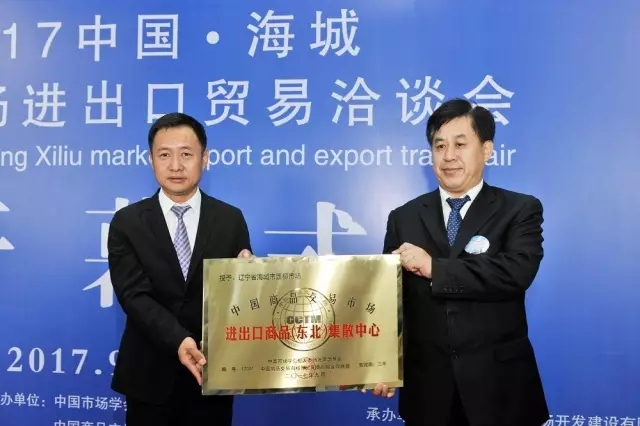 开幕式上,中国市场学会批发市场发展委员会授予西柳市场“中国商品交易市场进出口商品(东北)集散中心”称号。中国市场学会副会长、商务部市场转型升级专家组成员朱勇毅授牌,海城经济开发区管委会主任高光楠接牌。