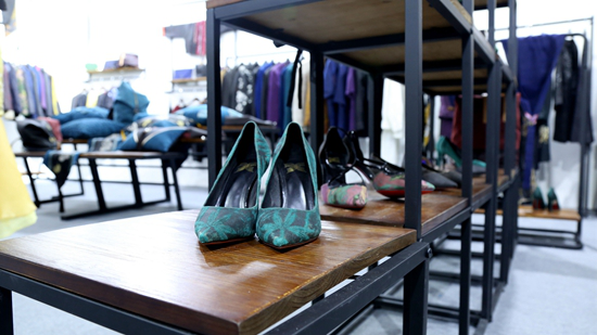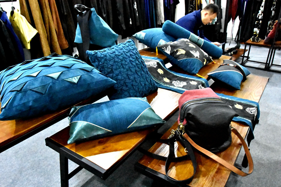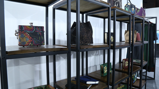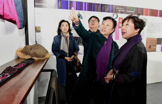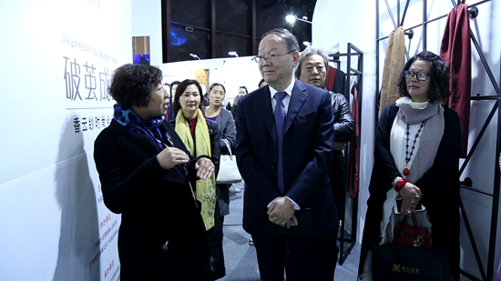 中国纺织工业联合会党委书记兼秘书长高勇参观“破茧成蝶”香云纱时尚化作品展