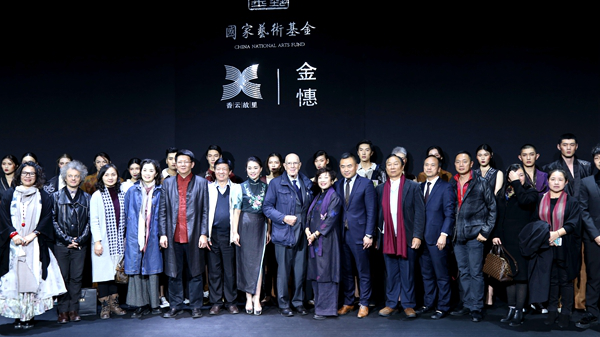 “香云故里•金憓”时装发布会 惊艳时装周 在本次“香云故里•金憓”时装发布会上,发布和展示的50余套男女服装均以香云纱为主体设计面料,讲述了香云纱的蝶变过程。该过程分别以自然之源、生命跃动、诗意远方、蝶舞日升四个主题展现。开场的“自然之源”取其植物染料薯莨之“赭”色,演绎成现代时尚的“赭”色牛仔系列;“生命跃动”运用传统香云纱面料演绎动感,是香云纱面料的又一次创新突破;“诗意远方”设计飘逸舒适、雅致脱俗,呈现出中国文化的诗意与禅意。“蝶舞日升”用香云纱特有的华丽色彩与肌理,搭配多姿多彩的蝴蝶图案刺绣,使传统暗沉的香云纱完成“蝶变”,惊艳了时装周。 欧洲设计中心荣誉主席Mario Boselli、意大利买手协会主席Mario DELL’Olio 、中国服装设计师协会主席张庆辉、清华大学美术学院教授李当岐、美国时装设计师协会市场部副总裁Mark、国际流行趋势专家Matteo、国际流行趋势专家Oritta等国内外服装设计专家与领导出席动态展“‘香云故里·金憓’时装发布会”。