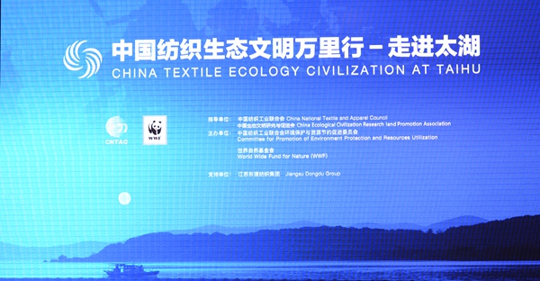 11月27日,由中国纺织工业联合会、中国生态文明研究与促进会指导,中国纺织工业联合会环境保护与资源节约促进委员会、世界自然基金会、江苏省宜兴市政府共同主办,江苏东渡集团纺织有限公司支持的中国纺织生态文明万里行——走进太湖活动在宜兴举办,论坛向全行业 、全社会发布了以“发展绿色低碳产业、建设区域性生态纺织”为主题的“ 太湖宣言” 。