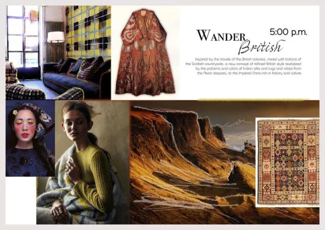 一个新的关于雅致英国风格复兴的设计概念,设计灵感源自于英属地旅行笔记,融合了苏格兰乡村的花呢格纹,它源自印度丝绸和地毯的图案和色彩以及亚洲大荒原的纹理,还有中国从古至今的深厚历史文化渊源。 Lovely Midnight