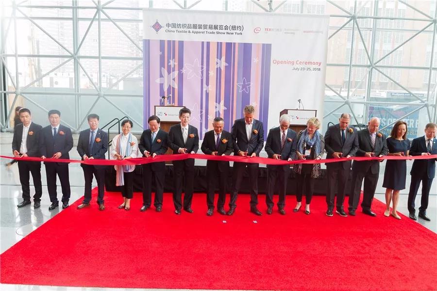 | 2018中国纺织品服装贸易展(纽约)隆重开幕!满满的正能量,带来信心和希望 | | 作者:中国贸促会纺织分会 时间:2018-07-24 评论(0) | | 纽约当地时间2018年7月23日上午9时半,伴着雨后朝阳冉冉升起, “第十九届中国纺织品服装贸易展览会(纽约)”暨美国服装面料采购展(TEXWORLD USA)、纽约国际服装采购展(Apparel Sourcing USA)、纽约国际家纺采购展(Home Textiles Sourcing)(以下简称纽约展)在美国纽约贾维茨会展中心隆重开幕。