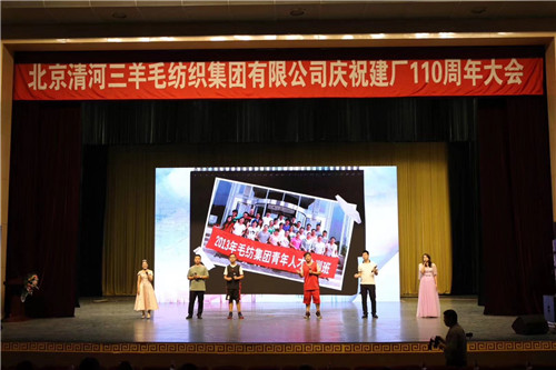 会上,以《砥砺奋进 继往开来》为主题举办了职工文艺汇演。公司职工用自编自导的节目,以朗诵、合唱、舞台剧、时装秀等多种形式,抒发了对建厂110周年的美好祝福。在《明天会更好》悠扬的歌声中,北京清河三羊毛纺集团庆祝建厂110周年大会圆满结束。