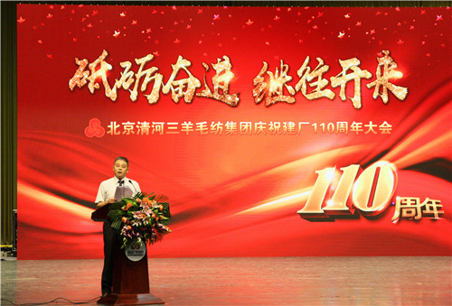 | 北京清河三羊毛纺集团庆祝建厂110周年大会隆重举行 | | 作者:中国纺织 时间:2018-09-18 评论(0) | | 2018年9月12日下午,北京清河三羊毛纺集团庆祝建厂110周年大会在火箭军礼堂隆重举行。北京时尚控股公司及集团公司领导、清河街道领导及集团公司客户代表、退离休领导、劳动模范和各子公司职工代表等共200余人参加了大会。大会由毛纺集团党委副书记刘玮主持。