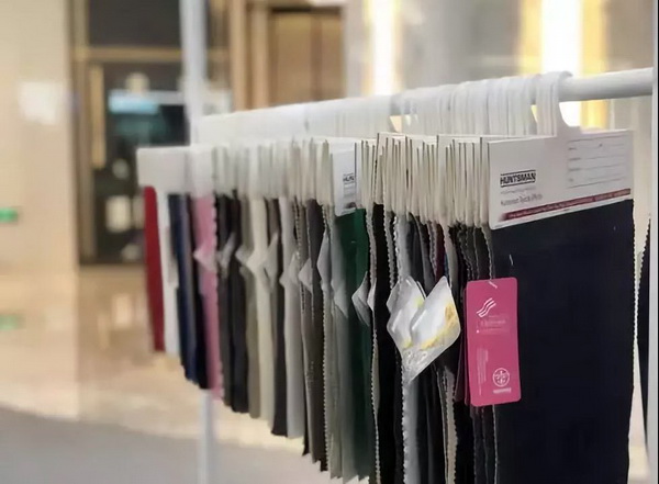 同时,巡展现场集中展示了三十套“中国纺织服装供应链设计师创新联盟”的优秀服装作品,兼具技术、时尚与创新,以此激发并推动濮院当地原创设计水平提升。 近千款中国流行面料吊牌新产品及联合吊牌产品也在巡展中与观众见面。本次展出的中国流行面料吊牌产品不仅是功能生态纺织品的优秀代表,更体现了亨斯迈纺织染化料助剂产品和中国流行面料吊牌的有效结合。不仅有防水透湿、抗皱、易护理等多种来自中国流行面料示范单位的功能性面料,也包含经联合吊牌认证的世界500强企业亨斯迈公司的功能性面料。