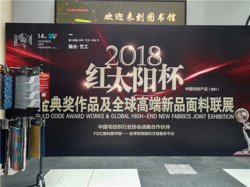 10月20日上午,作为我校“科学·艺术·时尚”节活动之一,由北京服装学院—FDC面料图书馆主办的2018“红太阳杯”中国毛纺产品(面料)金典奖作品及全球高端新品面料联展在图书馆一层大厅隆重开幕。“2018‘红太阳杯’ 中国毛纺产品(面料)金典奖”是由中国毛纺织行业协会主办的公益性行业活动,受到全国广大毛纺面料生产企业的积极响应和参与,在行业内有较高的影响力和认可度。今年金典奖下设“设计奖”“创新奖”“品质奖”“2018年度最具市场影响力奖”四类奖项,共评出获奖作品89种。这些作品花式品种丰富,科技含量高,突破了传统毛纺面料严谨、规整的模式,体现出毛纺产品的多样性、时尚化、功能性、运动感。