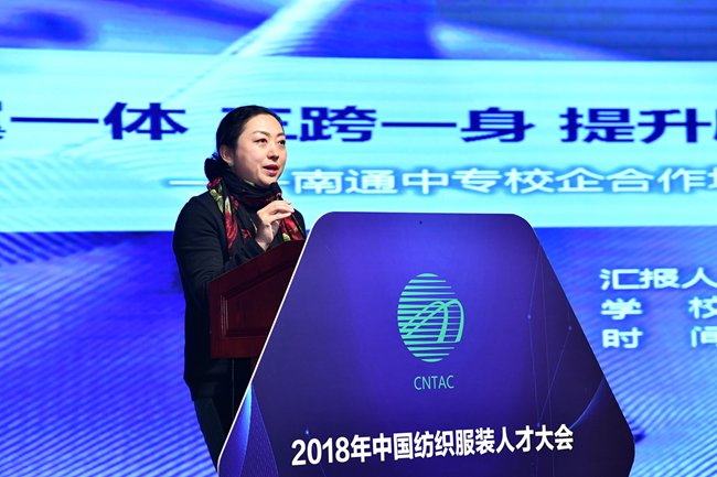 江苏南通中等专业学校艺术设计系主任施捷就“三翼一体 三跨一身 提升服装人才培养质量——南通中专校企合作培养服装行业人才典型案例”作经验交流。他表示,为适应纺织服装行业创新驱动、转型发展需求,立足服装人才复合型培养的规律,南通中专艺术设计系不断优化服装人才培养方案,提出了以“专业工作坊”为人才培养核心阵地、“企业工作站”为产教融合互通平台、“名师工作室”为智力技术支撑通道,实现了“三翼一体”服务平台;深化校企合作,进一步完善校企合作育人机制,构建以职业岗位能力培养为主线的“三跨一身”(跨行业、跨产业、跨专业)服装人才培养模式,实现了服装人才“技能传承→职素提高→专项强化”三阶段培养,形成了培养目标从“从业能力”向“关键能力”转变、课程内容从“知识导向”向 “工作导向”转变、课程类型从“学科体系”向“行动体系”转变、课程实施从“学校为本”向“校企合作”转变、课程评价从“一元评定”向“多元参评”转变,全面带动了服装专业建设与改革。