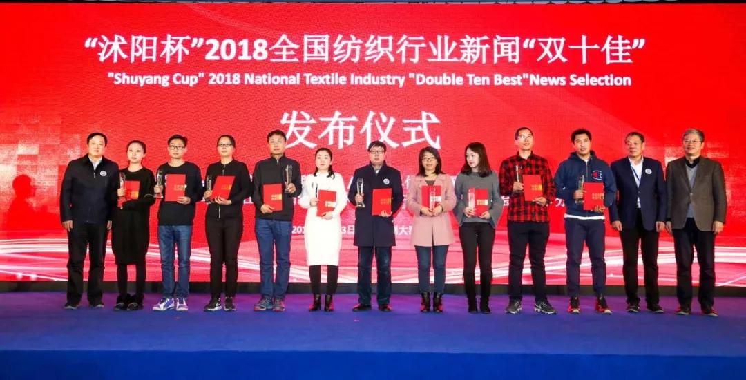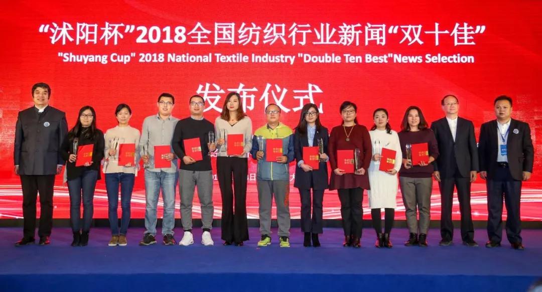 中国纺织工业联合会党委副书记陈伟康宣读了关于发布 “沭阳杯”2018全国纺织行业新闻“双十佳”的决定。 决定授予《中国工业报》郭俐君、《纺织科学研究》王菲等10位同志十佳记者荣誉称号;授予中央电视台“朝闻天下”栏目《2018潮州国际刺绣艺术双年展——传承经典魅力探索“跨界”融合》、中国纺织报《“新秀”沭阳奋战百亿针织梦》等10副作品十佳作品荣誉称号;授予经济日报《原创技术提升纺织业核心竞争力》等10幅为优秀作品。并进行了隆重颁奖。