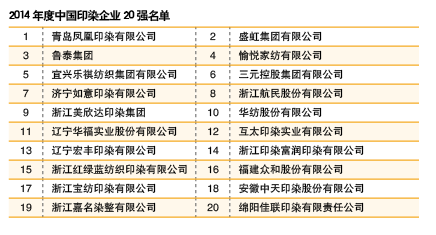 与此同时,“2014年度中国印染行业企业20强”也一同揭晓。 |